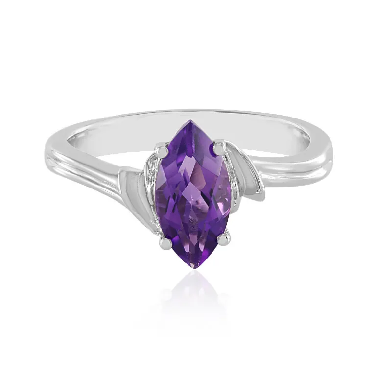 Entdecken Sie die Anziehungskraft des sibirischen Amethysts im Marquiseschliff, der in diesem elegant gearbeiteten Ring im Mittelpunkt steht. Der atemberaubende Edelstein von 1,33 Karat hat einen satten violetten Farbton, der aus dem glatten platinierten 925er Sterlingsilberband strahlt. Mit einem Gewicht von etwa 3,53 Gramm verleiht dieser raffinierte Ring jedem Ensemble einen Hauch von königlichem Charme. Er eignet sich sowohl für zwanglose Ausflüge als auch für formellere Anlässe und wird zu einem begehrten Stück in jeder Schmucksammlung.