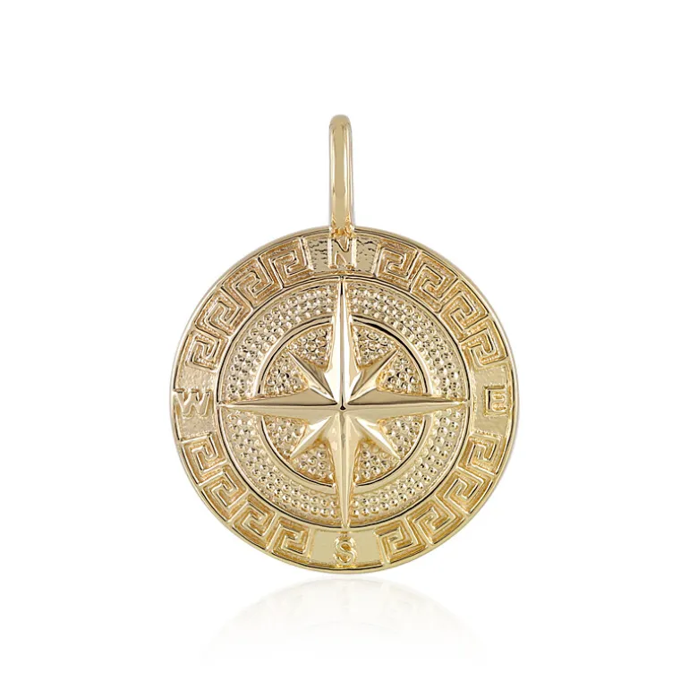 Goldener griechischer Schlüssel-Kompass-Anhänger, 925 Silber plattiert