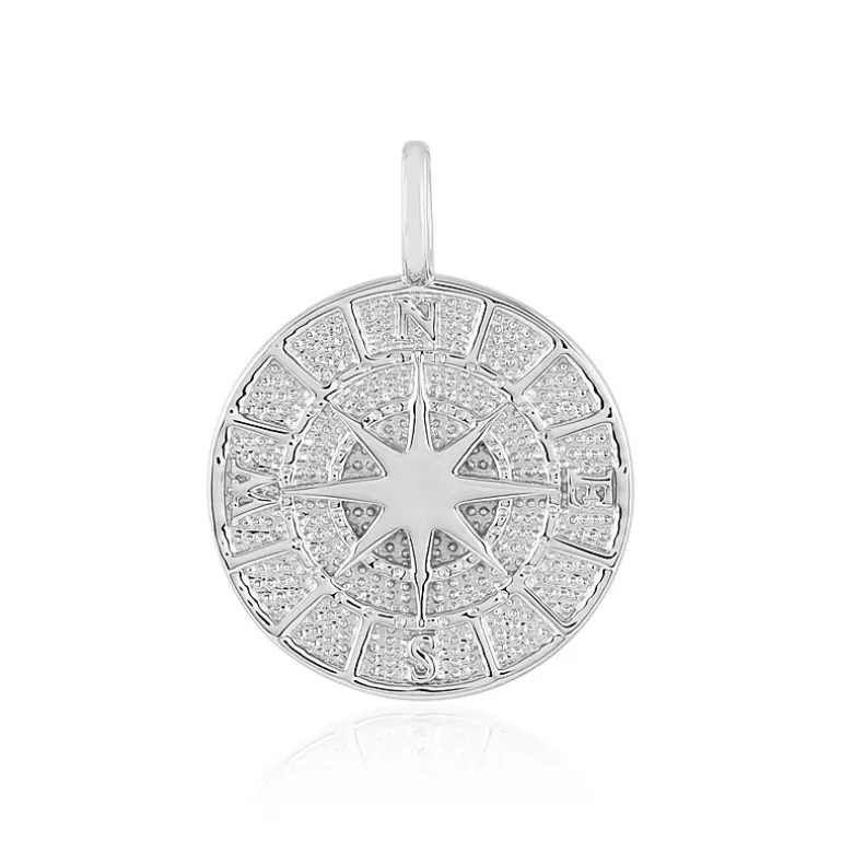 Platinierter 925 Silber Kompass-Anhänger