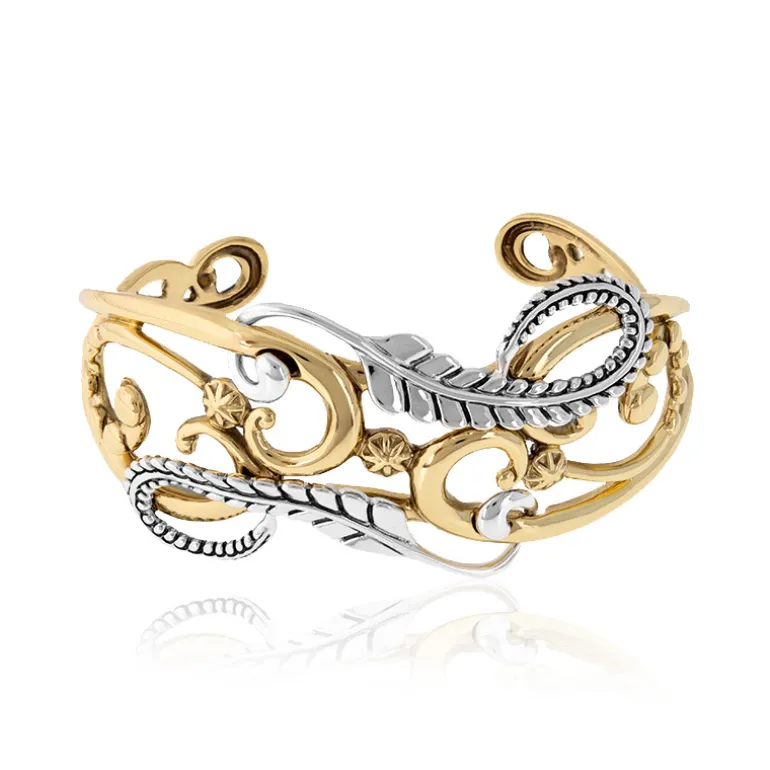 Das Desert Chic Armband aus vergoldetem Silber ist aus 925er Sterlingsilber gefertigt und mit einer eleganten Goldplattierung verziert. Mit einem Gewicht von ca. 7,5 g bietet dieses aufwendig gestaltete Armband eine einzigartige Mischung aus wirbelnden und federartigen Mustern. Es eignet sich sowohl für den Alltag als auch für besondere Anlässe und kann zu einem fließenden Kleid oder einem maßgeschneiderten Outfit getragen werden, um einen Hauch von Raffinesse zu vermitteln.