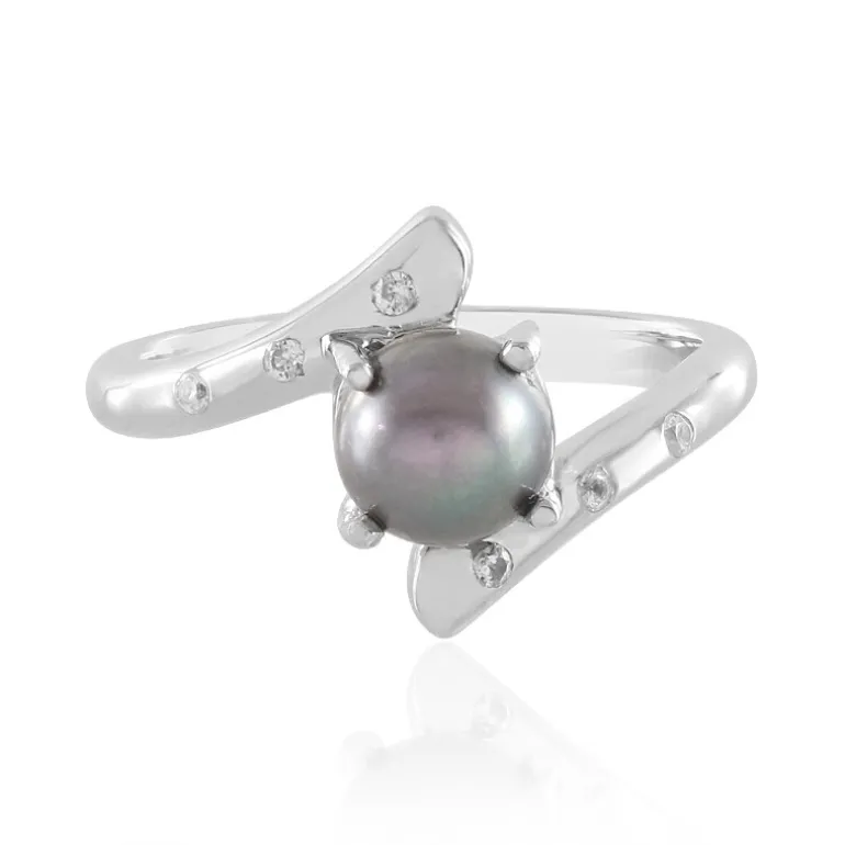 Schicker 6mm Chinesischer Süßwasserperlen Silber Ring, 0,072 ct