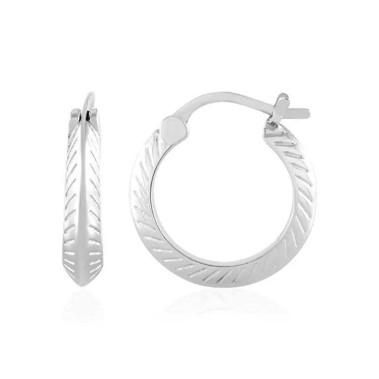 Diese schicken Ohrringe aus Sterlingsilber wiegen etwa 4,67 g und sind 19 mm groß. Sie sind mit einem zarten Federmuster versehen und bieten eine subtile Eleganz, die sowohl tagsüber als auch abends getragen werden kann. Kombinieren Sie sie mit einem eleganten Kleid zum Ausgehen oder mit einer lässigen Bluse für einen raffinierten Alltagslook. Diese vielseitigen Ohrringe sind ein Muss für jede Schmucksammlung und verleihen jedem Outfit einen Hauch von Raffinesse.