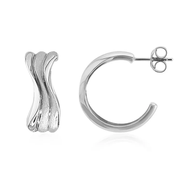 Diese modernen Ohrringe aus hochwertigem 925er Sterlingsilber mit einer luxuriösen platinierten Oberfläche sind eine elegante Ergänzung Ihrer Schmucksammlung. Das fließende Design vermittelt ein Gefühl von Bewegung und Raffinesse und macht sie zu einem vielseitigen Accessoire für den Tag oder den Abend. Mit einer Größe von 20 mm bieten sie das perfekte Gleichgewicht zwischen Auffälligkeit und Subtilität. Kombinieren Sie sie mit Ihrer bevorzugten Bürokleidung für einen glänzenden Look oder mit Abendkleidung für einen eleganten Touch.
