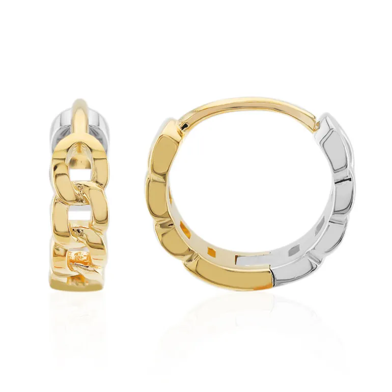 Diese schicken, zweifarbigen Ohrringe aus 925er Sterlingsilber bieten mit ihrem eleganten Design einen einzigartigen Twist. Mit einem Gewicht von ca. 2,28 g und einem Durchmesser von 12,5 mm eignen sie sich sowohl für legere als auch für formelle Anlässe. Ihre Mischung aus Silber- und Goldtönen macht sie zu einer vielseitigen Ergänzung für jede Garderobe, die sowohl zu modernen als auch zu klassischen Looks passt.