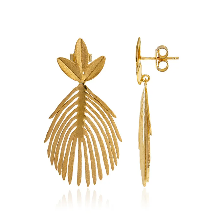 Tropical Leaf vergoldete 925 Silber Ohrringe, 5,4g