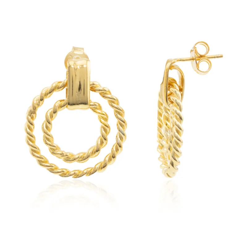 Goldener gedrehter Kreis 925 Silber Ohrringe