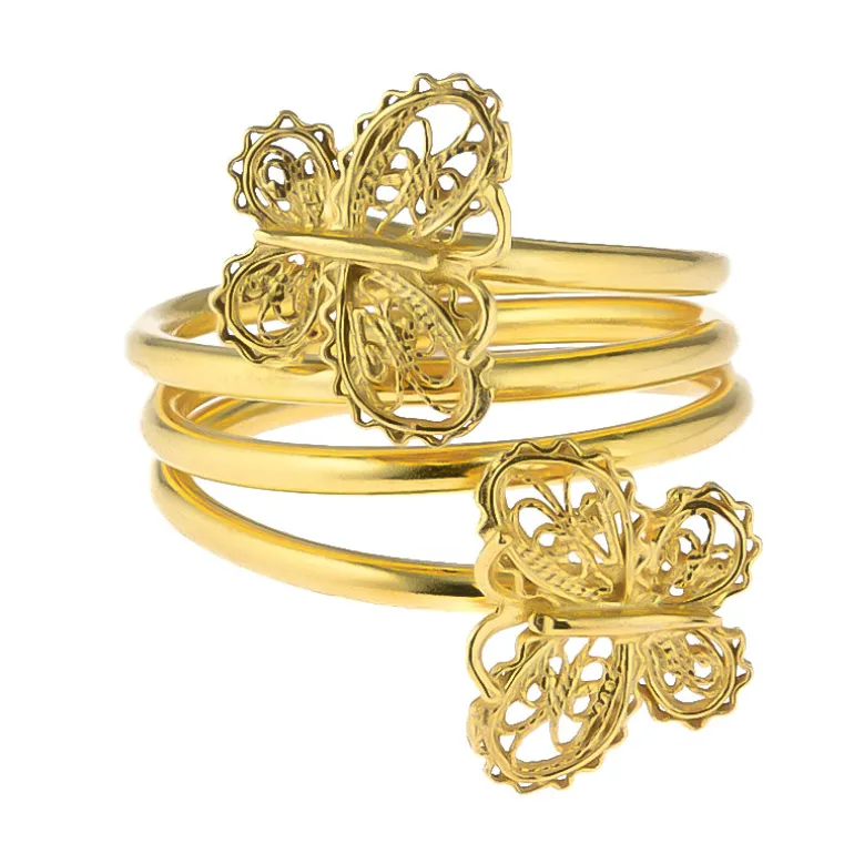 Filigraner Schmetterling Goldplattierter Silberring, Joias do Paraíso