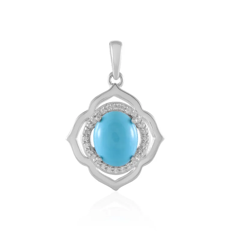 Dieser exquisite Anhänger zeigt einen bezaubernden Dornröschen-Türkis aus den USA, gefasst in 925er Sterlingsilber. Sein elegantes Design wird durch 28 schimmernde kambodschanische Zirkone akzentuiert und verleiht jedem Outfit einen raffinierten Touch. Perfekt für besondere Anlässe oder als stilvolles Accessoire für jeden Tag, verbindet dieser Anhänger klassischen Charme mit moderner Raffinesse und wertet sowohl legere als auch formelle Ensembles auf.