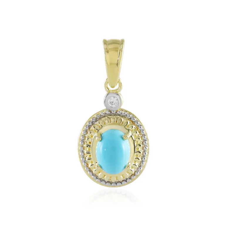 Entdecken Sie die Anziehungskraft amerikanischer Schätze mit diesem faszinierenden Anhänger aus vergoldetem Silber, der einen schimmernden Dornröschen-Türkis von 1,305 Karat präsentiert. Dieser ovale Cabochon wird von kambodschanischen Zirkonen umrahmt und verkörpert anmutige Raffinesse. Dieser Anhänger ist ideal, um Tageskleidung aufzuwerten oder Abendgarderobe einen Hauch von Blau zu verleihen. Er ist eine herzzerreißende Ergänzung für jede Schmucksammlung.