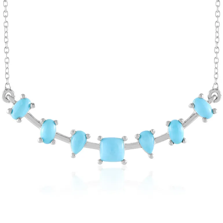Entdecken Sie die Anziehungskraft des Dornröschen-Türkises in dieser exquisiten, versilberten Halskette. Mit einem Gesamtgewicht von 1,656 Karat präsentiert dieses Stück eine Mischung aus antiken kissenförmigen, ovalen und tränenförmigen Cabochons. Es eignet sich sowohl für legere als auch für formelle Anlässe und verleiht jedem Outfit einen Hauch von Eleganz. Kombinieren Sie es mit einer weißen Bluse oder einem Abendkleid für einen atemberaubenden Look.