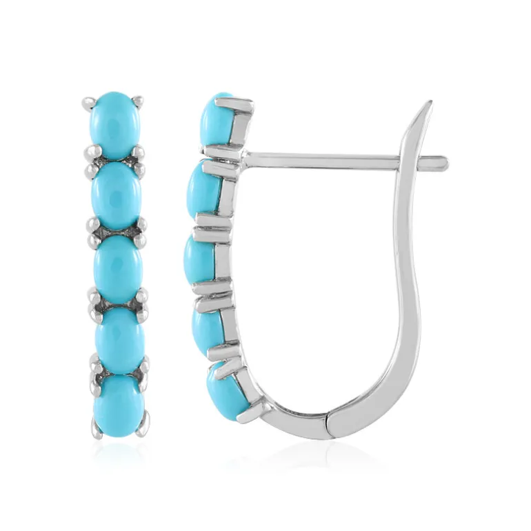 Unterstreichen Sie Ihren Stil mit diesen exquisiten Sleeping Beauty Turquoise Earrings. Die aus 925er Sterlingsilber gefertigten und für ein strahlendes Finish plattierten Ohrringe sind mit zehn atemberaubenden Türkis-Cabochons besetzt. Sie eignen sich perfekt, um jedem Outfit eine lebendige Note zu verleihen, und sind ideal für legere Ausgänge oder elegante Abende. Mit einem Gesamtkaratgewicht von 1,452 sind diese Ohrringe ein Muss für Türkisliebhaber.