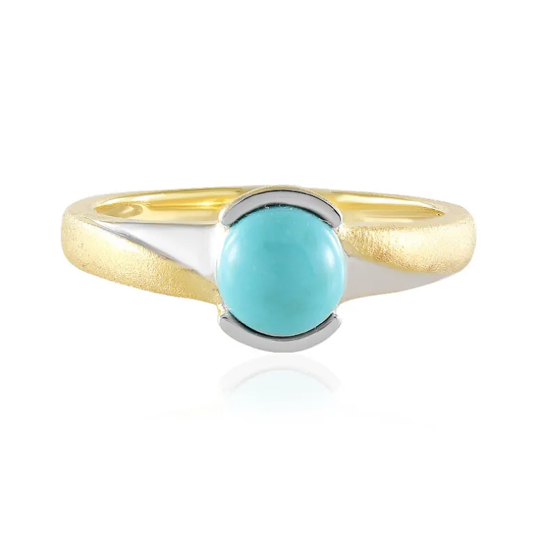 Entdecken Sie Eleganz mit diesem schicken Dornröschen-Türkisring. Mit einem leuchtenden 0,81 Karat runden Cabochon-Türkis aus den USA, gefasst in strahlend vergoldetem 925er Sterlingsilber. Perfekt, um dem Alltagsoutfit oder besonderen Anlässen einen Farbtupfer zu verleihen. Ein zeitloses Stück, das Raffinesse und Anmut verkörpert. Kombinieren Sie ihn mit Ihrem Lieblings-Sommerkleid, um seinen ganzen Charme zu entfalten.
