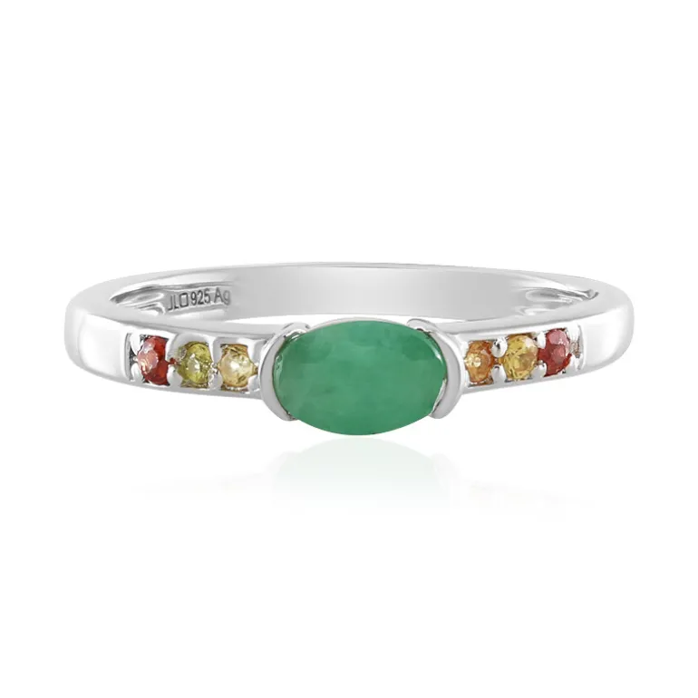 Entdecken Sie die subtile Eleganz dieses platinierten Rings aus Sterlingsilber mit einem grünen Socoto-Smaragd von 0,419 Karat aus Brasilien, gekrönt von einem Halo aus sechs Madagaskar-Saphiren von insgesamt 0,097 Karat. Dieser vielseitig einsetzbare Ring strahlt mit seinen ovalen und runden Edelsteinfacetten Raffinesse aus und eignet sich sowohl für den eleganten Tag als auch für den glamourösen Abend. Er eignet sich perfekt für alle, die die Schönheit exotischer Edelsteine zu schätzen wissen, und ist ein atemberaubendes Schmuckstück oder ein aufmerksames Geschenk für einen besonderen Menschen.