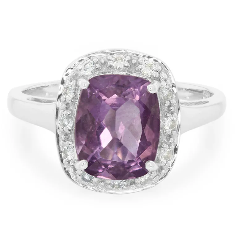 Entdecken Sie die Anziehungskraft dieses Silberrings mit spanischem Fluorit, der einen fesselnden 2,95-karätigen Fluorit im Antikschliff zeigt, der von 12 brasilianischen weißen Topasen im Brillantrundschliff umgeben ist. Das aus Sterlingsilber gefertigte Schmuckstück bietet eine raffinierte und anspruchsvolle Note. Es eignet sich sowohl für elegante Abende als auch für legere Outfits und verleiht jedem Ensemble einen Hauch von Luxus.