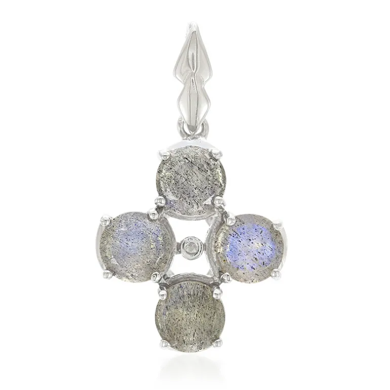 Fangen Sie die Essenz des Nachthimmels ein mit diesem bezaubernden Anhänger mit vier Spektrolithen im Rundschliff aus Rumänien von insgesamt 3,23 Karat. Die leuchtenden Steine werden durch einen glitzernden kambodschanischen Zirkon ergänzt, der in hochwertiges 925er Sterlingsilber mit einem Gewicht von ca. 2,1 Gramm gefasst ist. Mit einer Größe von 28 x 16,5 mm ist dieser Anhänger klassisch und modern zugleich und damit ein vielseitiges Accessoire für verschiedene Outfits und Anlässe.