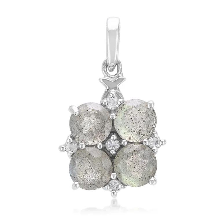 Entdecken Sie die subtile Anziehungskraft dieses Anhängers aus 925er Sterlingsilber mit 2,68 Karat rumänischen Spektrolithen im Rundschliff. Jeder Stein schimmert mit einem einzigartigen Schimmer, der durch funkelnde kambodschanische Zirkon-Akzente von insgesamt 0,253 ct. perfekt ergänzt wird. Das klassische Design misst 25,5 x 15 mm und ist damit eine vielseitige Ergänzung sowohl für den Alltag als auch für besondere Anlässe. Kombinieren Sie ihn mit einer Silberkette für einen dezenten, eleganten Look.