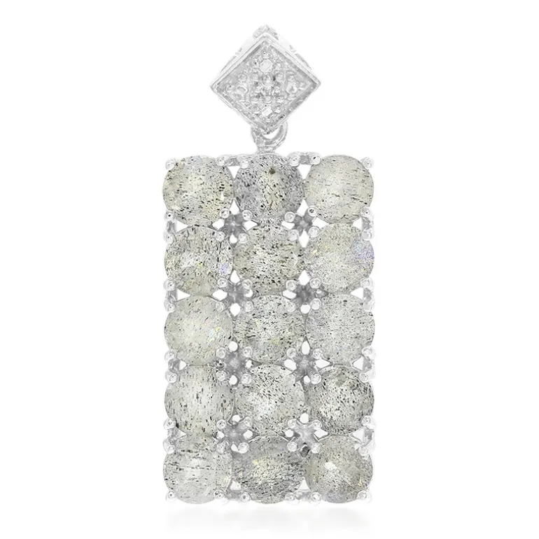Entdecken Sie die Faszination dieses bezaubernden Anhängers aus Sterlingsilber, der eine Reihe von 15 glitzernden Spektrolith-Edelsteinen aus Rumänien mit insgesamt 6,95 Karat präsentiert. Jeder Spektrolith funkelt in einem einzigartigen Schillern, das durch einen zarten Hauch von weißem Topas aus Brasilien ergänzt wird. Das Design des Anhängers strahlt einen raffinierten Charme aus. Er ist aus hochwertigem 925er Sterlingsilber mit polierter Oberfläche gefertigt und wiegt ca. 2,94 g. Er ist ein vielseitiges Schmuckstück, das sowohl der Tages- als auch der Abendgarderobe einen Hauch von Eleganz verleiht und somit ein ideales Geschenk oder eine geschätzte Ergänzung Ihrer Schmucksammlung darstellt.