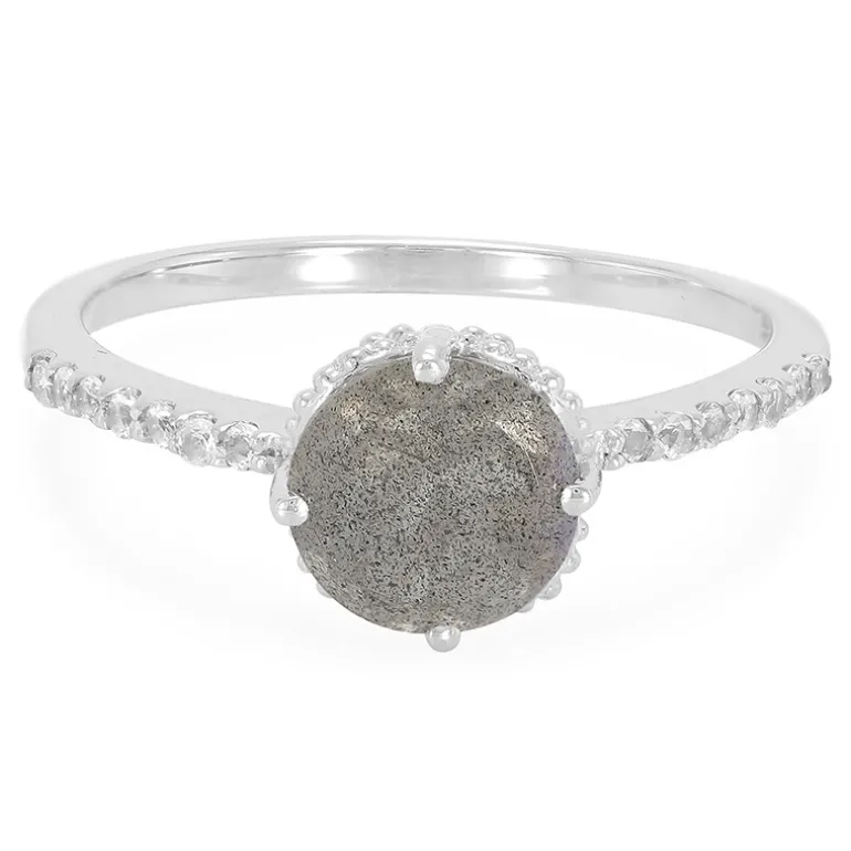 Rumänischer Spektrolith & Weißer Topas Silberring, 1,39ct