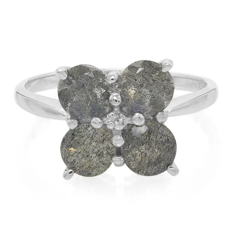 Dieser Ring aus veredeltem Silber vereint die Faszination natürlicher Edelsteine mit modernem Design. Er ist mit rumänischem Spectrolith besetzt, der für sein faszinierendes Farbenspiel bekannt ist. Jeder der vier Spektrolith-Edelsteine, die fachmännisch auf etwa 5 mm rund geschliffen wurden, entfaltet eine einzigartige Farbpalette, die durch den Schimmer eines brasilianischen Weißtopas ergänzt wird. Gefertigt aus hochwertigem 925er Sterling Silber mit einem Gesamtgewicht von 1,641 Karat, ist dieser Ring ein Zeugnis der Eleganz. Mit seinen Maßen von 24 x 20 mm ist der Ring sowohl für den Alltag als auch für den glamourösen Abend geeignet.