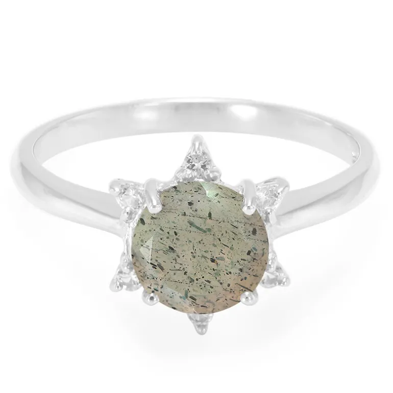 Entdecken Sie die bezaubernde Anziehungskraft dieses rumänischen Spektrolith-Rings, gekrönt von einem Edelstein von 1,12 Karat, der in einem harmonischen Tanz von Farbe und Licht erstrahlt. Das aus glänzendem 925er Sterling Silber gefertigte Schmuckstück ist von sechs weißen Topasen mit einem Gesamtgewicht von 0,081 Karat umgeben und glänzt mit schlichter Eleganz. Der runde Schliff in der Mitte des Schmuckstücks lädt zum genauen Hinsehen ein und enthüllt die komplizierten, einzigartigen Muster jedes Steins. Perfekt, um Ihrem Alltag einen Hauch von Raffinesse zu verleihen oder als dezentes Statement für besondere Anlässe.