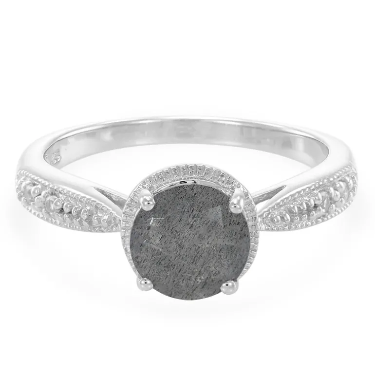 Dieser auffällige Ring präsentiert einen rumänischen Spektrolith von 1,1 Karat, der für sein bezauberndes Farbenspiel bekannt ist, gefasst in glänzendes 925er Sterlingsilber. Der runde Schliff des Edelsteins unterstreicht seine mystischen Farben, die durch das Funkeln von vier weißen Topasen von insgesamt 0,046ct ergänzt werden. Mit einem angenehmen Gewicht von ca. 2,3 g ist er eine elegante Wahl für den Alltag und besondere Anlässe. Dieser Ring eignet sich perfekt, um Ihrem Ensemble einen Hauch von Raffinesse zu verleihen, und sorgt garantiert für Gesprächsstoff.
