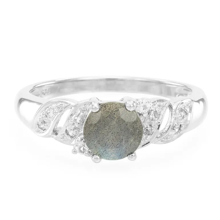 Rumänischer Spektrolith & Weißer Topas Silberring, 0,816ct