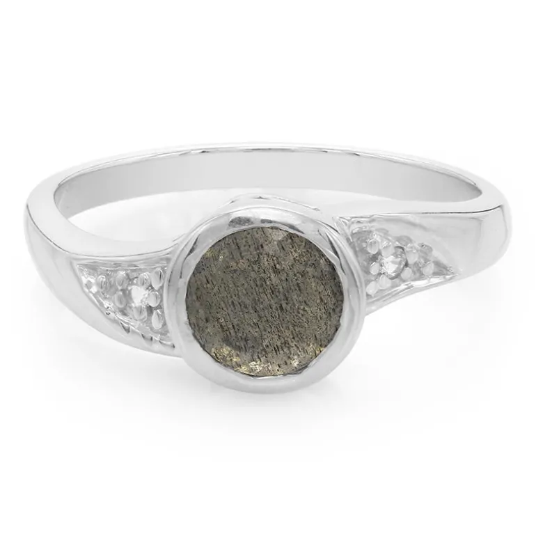 Entdecken Sie Eleganz mit diesem exquisiten Spektrolith-Ring aus 925er Sterlingsilber. Er ist mit einem faszinierenden 0,75-karätigen Spektrolith im Rundschliff aus Rumänien besetzt und wird von zwei strahlenden weißen Topasen akzentuiert. Dieser Ring ist sowohl für den Alltag als auch für besondere Anlässe geeignet. Er lässt sich wunderbar mit einem klassischen Abendkleid oder mit Berufskleidung kombinieren und verleiht jedem Ensemble einen raffinierten Touch.