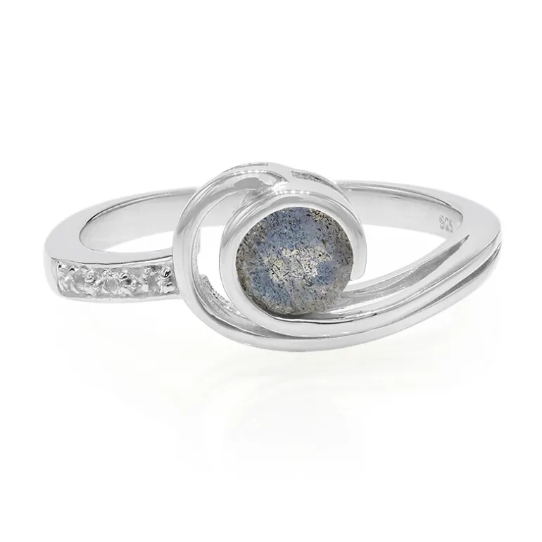 Entdecken Sie die Anziehungskraft dieses bezaubernden Rings mit einem rumänischen Spektrolithen von 0,37 Karat im Rundschliff, der von drei funkelnden brasilianischen weißen Topasen ergänzt wird. Dieses exquisite Schmuckstück aus elegantem 925er Sterlingsilber wiegt 1,97 g. Es eignet sich sowohl für legere als auch für formelle Anlässe und lässt sich wunderbar mit einem schicken Kleid oder einem eleganten Anzug kombinieren. Perfekt, um jedem Outfit einen Hauch von Raffinesse zu verleihen.