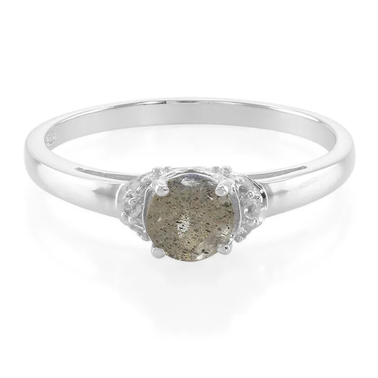 Rumänischer Spektrolith & Weißer Topas Silberring, 0,463ct
