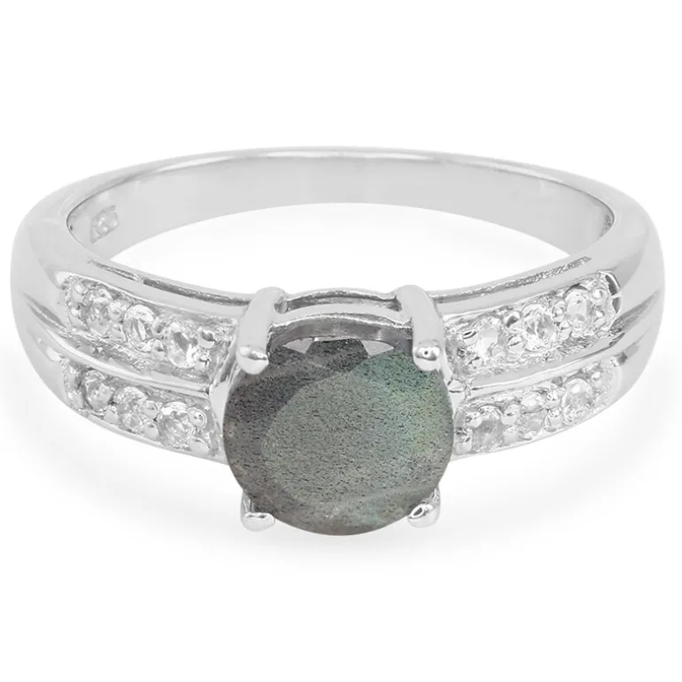 Rumänischer Spektrolith & Weißer Topas Silberring, 1,08ct