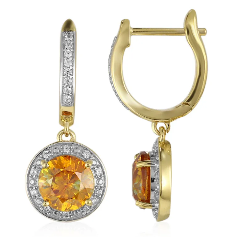 Entdecken Sie die Wärme Spaniens mit diesen luxuriösen Ohrhängern, die strahlende spanische Sphalerite von 3,128 Karat im Rundschliff mit funkelnden Zirkon-Akzenten aus Tansania umrahmen. Die 24 mm großen Ohrringe aus poliertem 9-karätigem Gold mit einem Gesamtgewicht von ca. 3,11 g strahlen in einem goldenen Glanz, der ideal ist, um die Abendgarderobe zu erhellen oder einen Hauch von Opulenz in Ihre Alltagsgarderobe zu bringen. Perfekt für Edelsteinliebhaber, spiegeln diese Stücke die vibrierende Schönheit der spanischen Sonne wider.