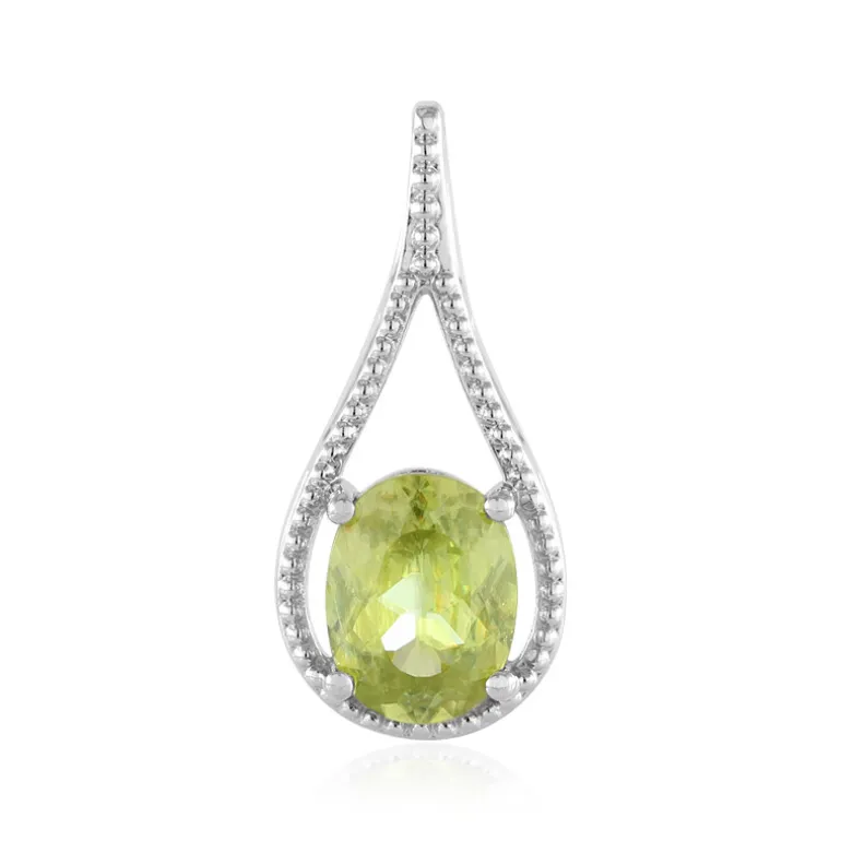 Entdecken Sie die Eleganz dieses Silberanhängers mit Madagaskar-Sphäen. Der ovale Sphene im Brillantschliff mit einem Gewicht von 1,055 Karat besticht durch seinen hellen, zitronengelben Farbton und ist in platiniertes 925er Sterlingsilber gefasst. Dieser Anhänger eignet sich sowohl für den Alltag als auch für besondere Anlässe und verleiht jedem Outfit einen Hauch von Raffinesse.
