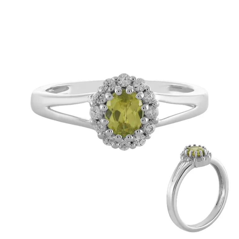 Entdecken Sie den lebendigen Charme dieses bezaubernden brasilianischen Sphene-Rings im Ovalschliff, der von einem Halo aus funkelnden kambodschanischen Zirkonen umgeben ist. Mit einem Gesamtkaratgewicht von 0,5 ct, gefasst in poliertem 925er Sterlingsilber, ist dieser Ring ein Zeugnis der Eleganz. Sein 5 x 4 mm großer zentraler Edelstein ist der Star und bietet einen einzigartigen Farbakzent, der hervorsticht. Dieser Ring lässt sich mühelos mit der Alltagskleidung oder als Akzent für die Abendgarderobe kombinieren und verspricht eine vielseitige Ergänzung für jede Schmucksammlung zu sein.
