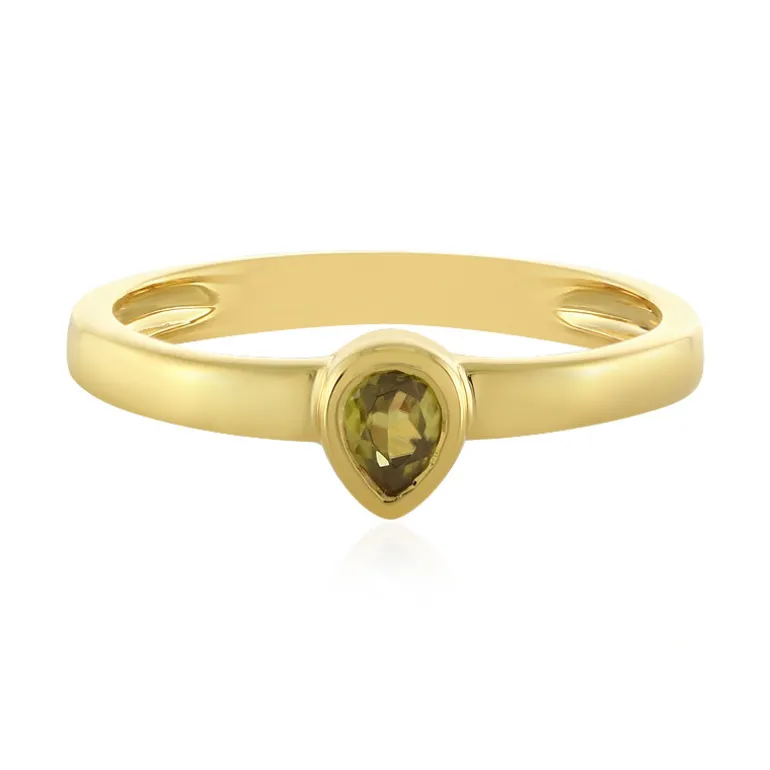 Entdecken Sie den subtilen Charme dieses vergoldeten Rings aus Sterlingsilber mit einem zarten brasilianischen Sphen-Edelstein von 0,144 Karat. Der tropfenförmige Edelstein verleiht ihm einen Hauch von Raffinesse, eingebettet in ein schlichtes und modernes Design, das sich sowohl für den Alltag als auch für besondere Anlässe eignet. Sein vielseitiger Stil macht ihn zu einem großartigen Begleiter für Ihre minimalistischen Outfits oder als raffinierten Akzent für Ihre Abendgarderobe.