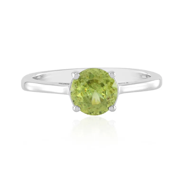Entdecken Sie die Brillanz dieses bezaubernden Solitärrings aus Sphene, einem Schatz von der Insel Madagaskar. Das Herzstück, ein Sphene von 1,026 Karat im Rundschliff, strahlt in einem leuchtenden Chartreuse-Farbton und ist in 925er Sterlingsilber eingefasst. Dieses Schmuckstück wurde für die moderne Frau entworfen und stellt die natürliche Schönheit des Steins dem eleganten Silberband gegenüber. Er ist vielseitig genug für den täglichen Gebrauch, verleiht aber auch abendlichen Looks einen Hauch von Farbe und ist damit eine tadellose Wahl für jeden Anlass.