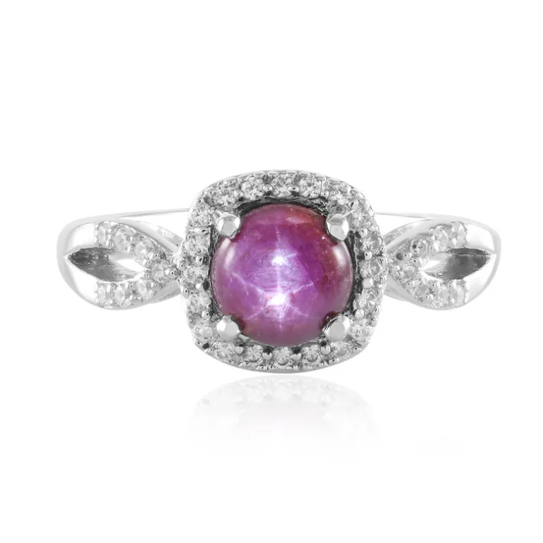 Enthüllen Sie Ihre Eleganz mit diesem Star Ruby Sterling Silber Ring. Mit einem fesselnden 1,638 Karat runden Cabochon-Sternrubin aus Madagaskar, der von 34 funkelnden Zirkonsteinen aus Kambodscha umgeben ist, strahlt dieses Schmuckstück Raffinesse aus. Sein leuchtendes Design ist perfekt für die Abendgarderobe oder besondere Anlässe und passt sowohl zu modernen als auch zu klassischen Stilen. Erweitern Sie Ihre Sammlung mit diesem zeitlosen Schmuckstück.