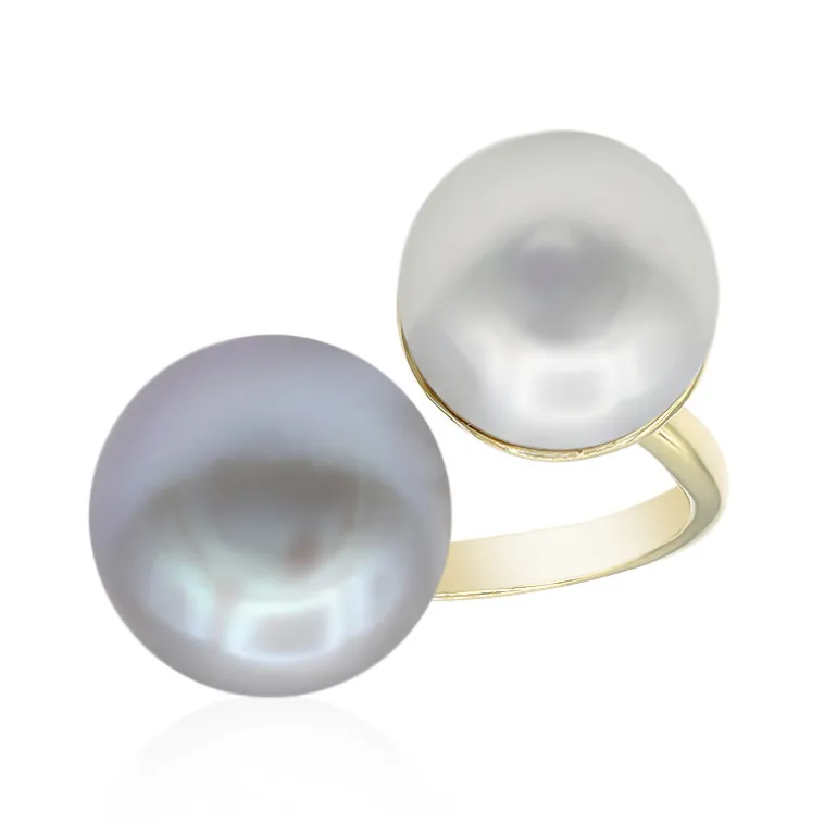 Entdecken Sie die Eleganz dieses schicken Rings, der mit zwei wunderschönen chinesischen Süßwasserperlen besetzt ist. Das vergoldete Band aus 925er Sterlingsilber passt wunderbar zu den weißen und silbergrauen Perlen und verleiht dem klassischen Stil eine moderne Note. Dieses Schmuckstück eignet sich sowohl für den Alltag als auch für besondere Anlässe. Es lässt sich wunderbar mit Abendkleidern oder eleganten Freizeitoutfits kombinieren und verleiht Ihrem Look einen Hauch von Raffinesse.