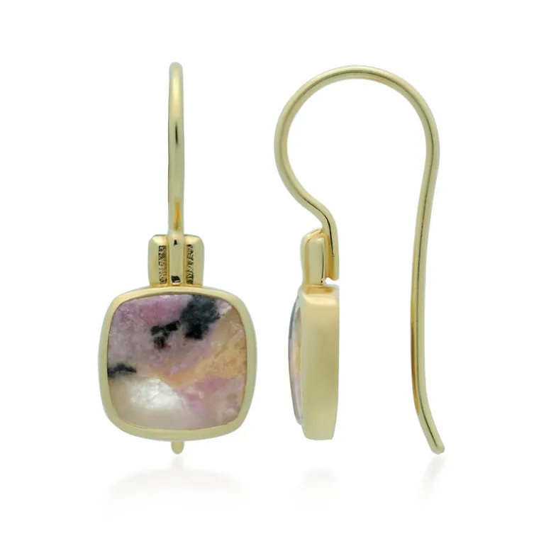 Indonesische Rhodonit-Ohrringe aus vergoldetem Silber, 12ct