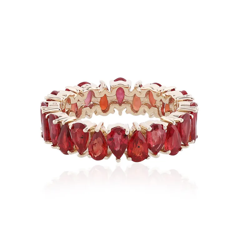 Entdecken Sie den Glanz dieses Rings mit tansanischen Rubinen, ein wahres Juwel für jeden Schmuckliebhaber. Der aus 14-karätigem Gold gefertigte Ring präsentiert eine atemberaubende Reihe von Rubinen im Ovalschliff, von denen jeder einzelne sorgfältig aufgrund seiner Farbtiefe und Klarheit ausgewählt wurde. Die Abmessungen von 22×22 mm machen ihn zu einem Highlight, das aus jedem Blickwinkel funkelt. Dieser Ring ist ebenso vielseitig wie schön und eignet sich perfekt für besondere Anlässe oder um Ihrer Alltagsgarderobe einen Hauch von Luxus zu verleihen.
