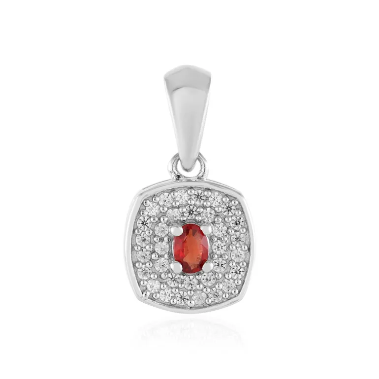 Entdecken Sie die Anziehungskraft dieses Rubinanhängers aus Tansania, eine raffinierte Wahl für jeden Schmuckliebhaber. Ein leuchtender Rubin von 0,181 Karat im Ovalschliff ist elegant von 32 kambodschanischen Zirkonen umgeben, die ein umwerfendes Funkeln erzeugen. Der Anhänger ist in glänzendem platiniertem 925er Sterlingsilber gefasst und eignet sich sowohl für legere als auch für formelle Anlässe. Kombinieren Sie ihn mit einer einfachen Silberkette für einen zeitlosen Look.