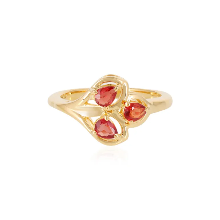 Entdecken Sie die Faszination tansanischer Rubine mit diesem exquisit gearbeiteten Ring. Die warmen Farbtöne der drei Rubine im Tropfenschliff mit insgesamt 0,514 Karat werden durch den Glanz der Fassung aus vergoldetem 925er Sterlingsilber wunderschön akzentuiert. Das raffinierte Design sorgt für einen eleganten Auftritt und macht ihn zu einem vielseitigen Schmuckstück, das sich sowohl für den eleganten Alltag als auch für besondere Anlässe eignet. Kombinieren Sie ihn mit ergänzenden warmen Farbtönen, damit die Rubine richtig zur Geltung kommen.