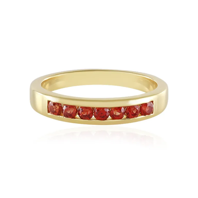 Entdecken Sie die Anziehungskraft des tansanischen Rubins mit diesem Ring aus vergoldetem 925er Sterlingsilber, der ein Quintett aus farbenprächtigen Edelsteinen enthält. Jeder Rubin, der sorgfältig in eine runde Form geschliffen wurde, fängt mit seinem Gewicht von 0,412 Karat die Essenz der tansanischen Schönheit ein und sorgt für eine lebhafte Eleganz an Ihrem Finger. Dieses Schmuckstück verkörpert ein perfektes Gleichgewicht von Stil und Raffinesse und eignet sich sowohl für zwanglose Ausflüge als auch für Momente, die einen Hauch von Glamour erfordern.