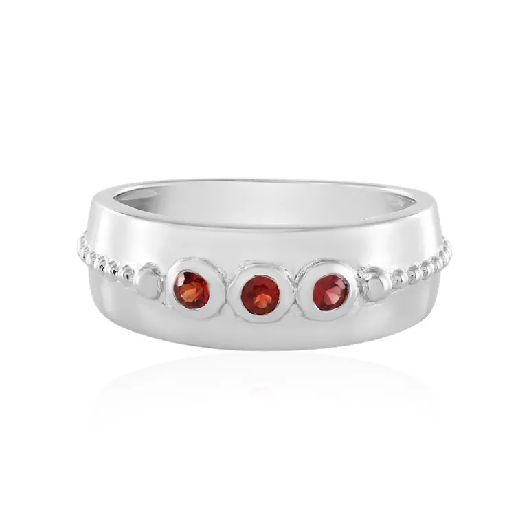 Entdecken Sie die Faszination tansanischer Rubine mit diesem raffinierten Silberring. Ein Trio von strahlenden 0,165 Karat runden Rubinen im Brillantschliff ist in platiniertes 925er Sterlingsilber gefasst und wiegt ca. 2,72 g. Dieses Schmuckstück, das Anmut und Stil verkörpert, ist eine vielseitige Ergänzung für jede Garderobe, ideal, um Alltagsoutfits aufzuwerten oder ein elegantes Abendensemble zu verschönern.