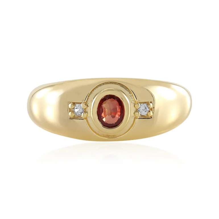 Entdecken Sie die Raffinesse dieses atemberaubenden Rings aus vergoldetem 925er Sterlingsilber, dessen Herzstück ein ovaler Rubin aus Tansania im Brillantschliff von 0,237 Karat ist, flankiert von einem schimmernden Zirkon aus Kambodscha. Die reichen Farbtöne des Rubins werden durch die warmen Goldtöne des Rings ergänzt und machen ihn zu einer strahlenden Ergänzung für jedes Ensemble. Dieses Schmuckstück eignet sich sowohl für zwanglose Ausflüge als auch für formelle Anlässe. Es sorgt für Gesprächsstoff und ist ein geschätzter Bestandteil Ihrer Schmucksammlung.