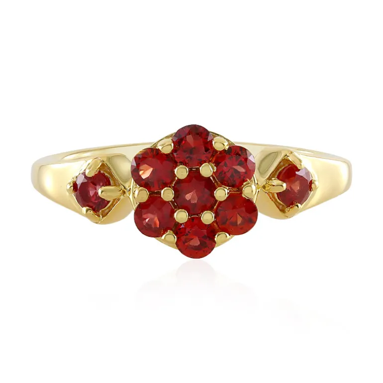 Entdecken Sie die Faszination dieses atemberaubenden Rings aus vergoldetem 925er Sterlingsilber mit einem Strauß aus neun strahlenden tansanischen Rubinen von insgesamt 0,9 Karat. Der runde Brillantschliff jedes 2,7 mm großen Rubins unterstreicht den tiefroten Farbton und verleiht jedem Ensemble einen Hauch von Raffinesse. Dieser Ring eignet sich sowohl für den eleganten Alltag als auch für besondere Anlässe und ist eine vielseitige Ergänzung für jede Schmucksammlung.