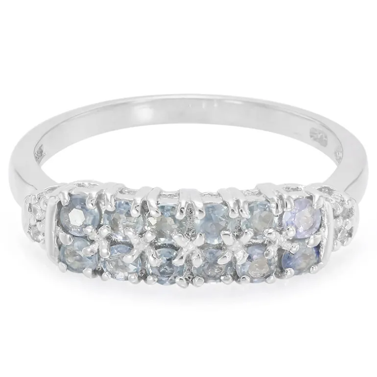 Dieser bezaubernde Ring besticht durch die harmonische Kombination von 12 tansanischen Saphiren im Rundschliff mit einem Gesamtgewicht von 0,57 Karat und funkelnden weißen Saphiren aus Madagaskar. Das moderne Design aus glänzendem 925er Sterlingsilber mit einem Gesamtgewicht von 0,595 ct ist zeitlos und raffiniert zugleich. Dieser Ring eignet sich perfekt, um sowohl im Alltag als auch bei besonderen Anlässen einen Hauch von Eleganz zu vermitteln und ist ein Muss für jede Schmuckliebhaberin.