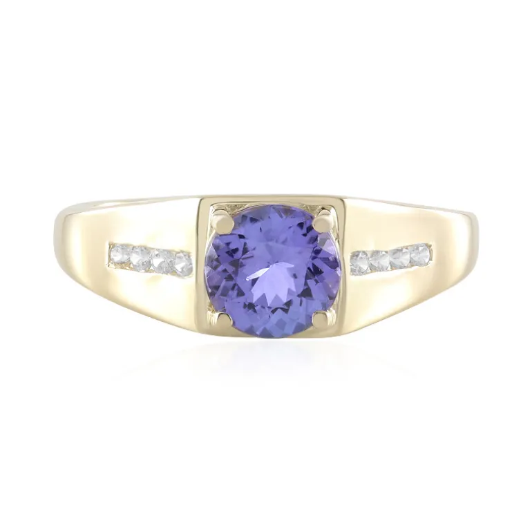Dieser atemberaubende Ring präsentiert einen tansanischen Tansanit von 0,81 Karat, der in runder Brillantform geschliffen ist, um ein maximales Funkeln zu erzeugen. Flankiert wird er von acht kambodschanischen Zirkonen von insgesamt 0,099 Karat. Der Ring ist aus warmem 375er Gelbgold gefertigt und wiegt etwa 2,28 Gramm. Die beachtliche Größe von 27×22 mm macht ihn zu einem auffälligen Accessoire. Dieser Ring eignet sich perfekt für besondere Anlässe oder als auffällige Ergänzung zu Ihrer Alltagsgarderobe und zeugt von Eleganz und raffiniertem Geschmack.