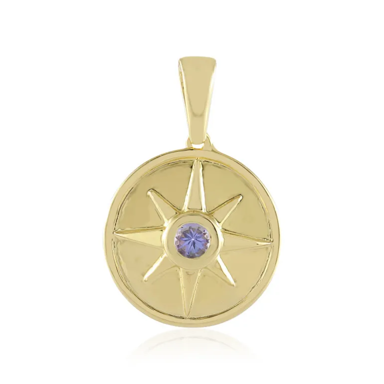 Dieser schicke Tansanit-Anhänger ist aus 925er Sterlingsilber gefertigt und mit einer Goldplattierung verziert. Der 0,117 Karat große Tansanit im Rundschliff aus Tansania verleiht ihm einen Hauch von Eleganz. Dieser Anhänger eignet sich sowohl für das tägliche Tragen als auch für besondere Anlässe und passt zu einer Vielzahl von Outfits, von leger bis formell. Sein einzigartiges Design macht ihn zu einem auffälligen Accessoire für jede Schmucksammlung.