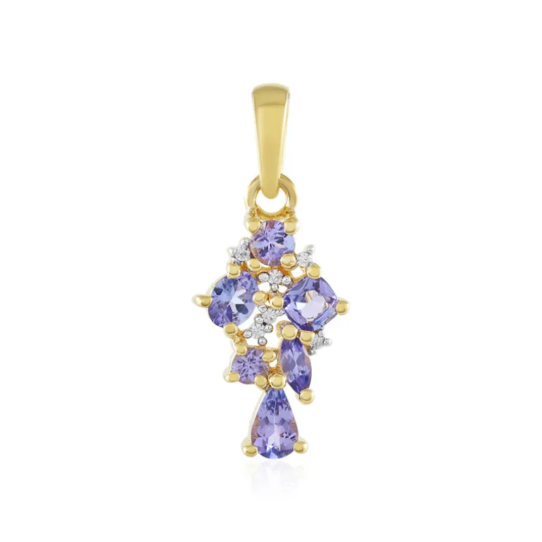 Entdecken Sie die Eleganz dieses exquisiten Tansanit-Anhängers mit einer atemberaubenden Auswahl an fachmännisch geschliffenen Steinen aus Tansania. Jeder Edelstein wird durch glitzernde Zirkone aus Kambodscha ergänzt und ist in vergoldetes 925er Sterling Silber gefasst. Das vielseitige Design dieses Anhängers eignet sich sowohl für formelle Anlässe als auch für Freizeitausflüge und verleiht jedem Outfit einen Hauch von Raffinesse und Charme.