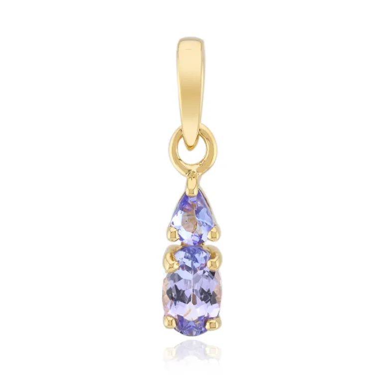 Entdecken Sie die Eleganz dieses vergoldeten Silberanhängers mit Tansaniten. Mit tansanischen Tansaniten im Oval- und Tropfenschliff funkelt dieses Stück mit insgesamt 0,636 ct. Die leuchtenden violett-blauen Farbtöne in Kombination mit dem glänzenden Gold sorgen für einen raffinierten Look. Er eignet sich sowohl für Freizeitausflüge als auch für formelle Anlässe und ergänzt eine Vielzahl von Outfits, indem er jedem Ensemble einen Hauch von Luxus verleiht.